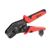 • Мультидиапазонная модель для опрессовки втулочных наконечников • Диапазон сечений втулочных наконечников: • НШВИ, НШВ: 0.25–10 мм2 • НШВИ(2): 2?0.5–2?6.0 мм2 • Универсальный инструмент для опрессовки широкого ряда втулочных наконечников • Одна саморегулирующаяся матрица на все типоразмеры диапазона • Ширина обжимной матрицы: 13 мм • Инструмент перекрывает диапазон из 17 размеров втулочных наконечников • Квадратный профиль обжима с рифлением • Усовершенствованный храповой механизм • Регулятор прижимного усилия матриц • Двухкомпонентные эргономичные рукоятки с небольшим раскрытием • Вес: 395 г • Длина: 190 мм